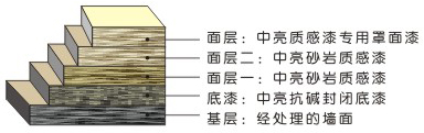 本品為一種凹凸狀層面式的含有細砂的耐用質感漆,能抵御不同的氣候變化,細砂呈現(xiàn)的質感使得涂膜更具裝飾效果和遮蓋表面的輕微的凹凸。是一種立體感強、抗粘污、耐擦洗、耐久耐水性好、質地厚實的裝飾性墻面漆。