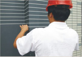 第四步:彈出分格線 線條漆干燥后,用墨線彈出根據(jù)客戶要求的面磚尺寸大小所確定的分格線。